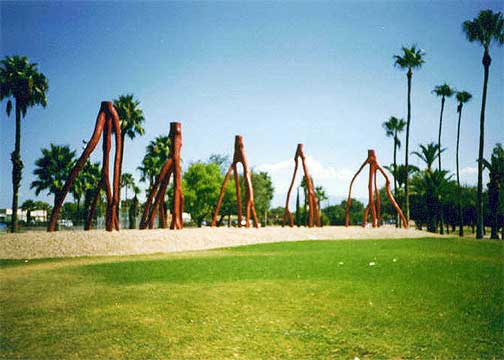 Left to Right: 1) Sculpture (looks to the kids like people walking; to me arteries 2) Giraffe 3) Giraffe again 4) Sculpture (kids in there) 5) Anteater