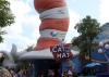 I loved the looks at this area. I look in a shop that has some knives (replicas) and some old looking stuff that is neat. I am tired and we sit on a fountain. All of a sudden there's someone speaking to us. I didn't realize it at first. They are doing a comedy routine at our expense, asking us if the drink is refreshing and be careful I don't spill it etc. I ignore; not at first realizing it's us they're talking to till others walk by and the voice starts making fun of a shirt or some hat or whatever. Turns out it's the "Mystic Fountain". You are supposed to make a wish.... We head into "The Eight Voyage of Sinbad" which turns out to be a stunt show with live actors dressed up as Sinbad, the princess, the evil queen and minions etc. It was cute and in the shade and a good place to relax as it takes a good amount of time so my feet can stop throbbing. After the show, we go to "Poseidon's Fury" which turns out to be another sort of stunt show. It's sort of the Terminator show in the other park; half screen and half live people. It left us basically unimpressed but it was just "ok" and nothing that spectacular. We had to stand through it so it did not make me too happy. After there, we leave to the last land and we know we are doing nothing there as it's the kids land. But we have to walk through it to get out and so I go there, snap photos and hit the gift shops to find something for the baby. We find nothing that we can't find elsewhere cheaper. It's "Seuss Landing". Here are photos of bother "The Lost Continent" and "Seuss Landing":