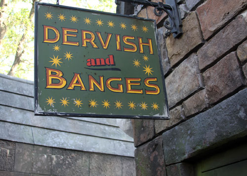 Left to Right: 1) Wands 2) more wands on display and 3) even more wands on display. 4) Dervish and Banges sign (This is where they sell Quidditch stuff/robes etc.