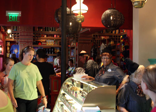 Left to Right: 1) Lost Continent Crowd shot/street view 2) Fire Eater's Grill (restaurant) 3) Lost Continent Souvenir shop 4) Mystic Fountain
