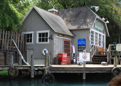 Left to Right: 1) Church (on the Jaws ride) 2) View of the Amity town (not on the Jaws Ride but outside of it) 3) Dock area of the Jaws Ride 4) more buildings on the Jaws ride.