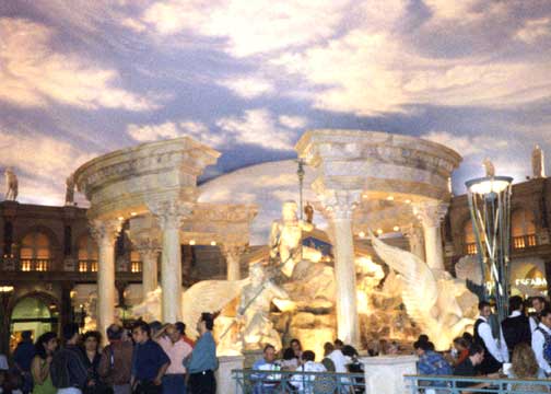 Of all the hotels we visited (haven't seen the new ones like the Venetian and New York etc), this was my absolute favorite. The painter who did the ceiling is brilliant. The statues and the storefronts are gorgeous; there are really nice expensive upscale shops here. There's a life-sized replica of Michelangelo's David inside; a fountain with Neptune being in the center and they have Anthony and Cleopatra, as well as Caesar and Centurions and Gladiators walking about, and sometimes they do a show. There is a talking statue show free to all, and Planet Hollywood, as well as other famous chef's have restaurants here (Wolfgang Puck etc). Caesar's is known for its entertainment; Celine Deion and Elton John are fixtures here and they have other famous comedians do shows as well. Some amenities include pool, spa, golf, free shuttle to the Rio, Airline Reservations, Concierge etc. It's all good...